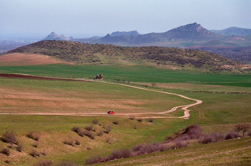 > პეიზაჟი წითელი მანქანით